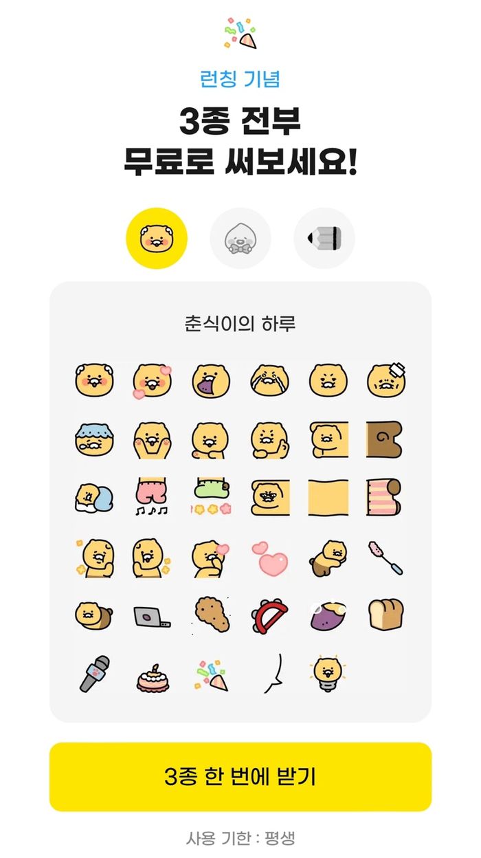 카카오가 지난 19일 무료 이모티콘을 출시했다. [사진 출처 = 카카오톡 캡처] |