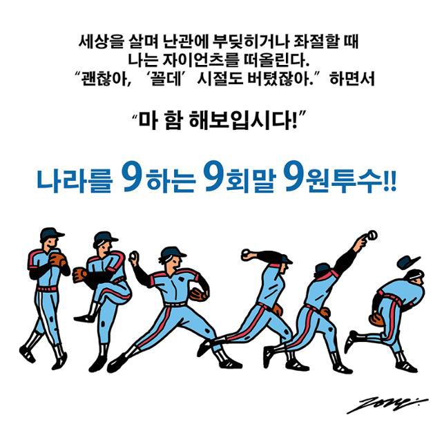 조 대표는 이날 페이스북에 롯데자이언츠 투수가 공을 던지는 연속 동작을 표현한 만화 이미지를 공유했다. 이미지에는 "세상을 살며 난관에 부딪히거나 좌절할 때 나는 자이언츠를 떠올린다" "괜찮아, 꼴데(꼴찌 롯데) 시절도 버텼잖아" "마 함 해보입시다" 등 글귀도 적혀있다.