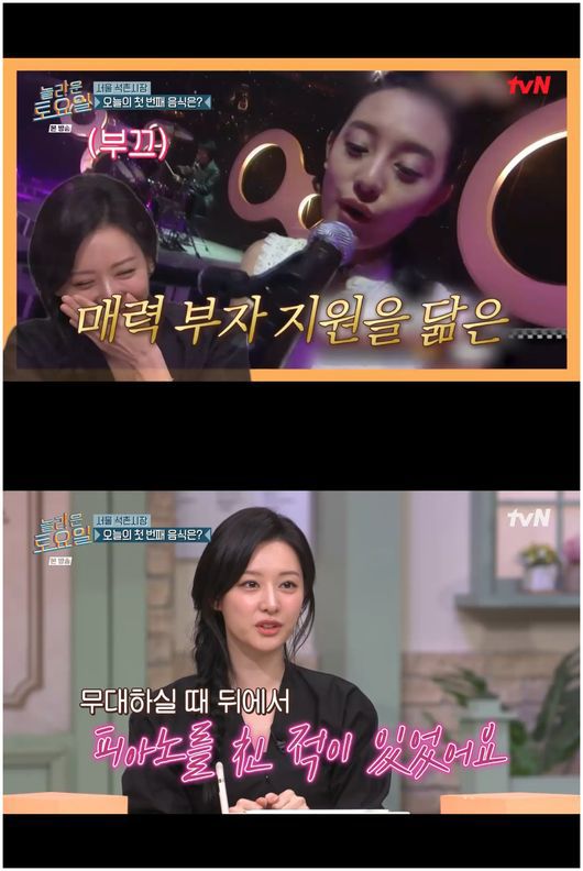 김지원은 “제가 옛날 가수 윤하님 노래하실 때 뒤에서 피아노를 쳤었다. 뮤직비디오도 나왔다”라며 부끄러운 듯 수줍게 대답했다.