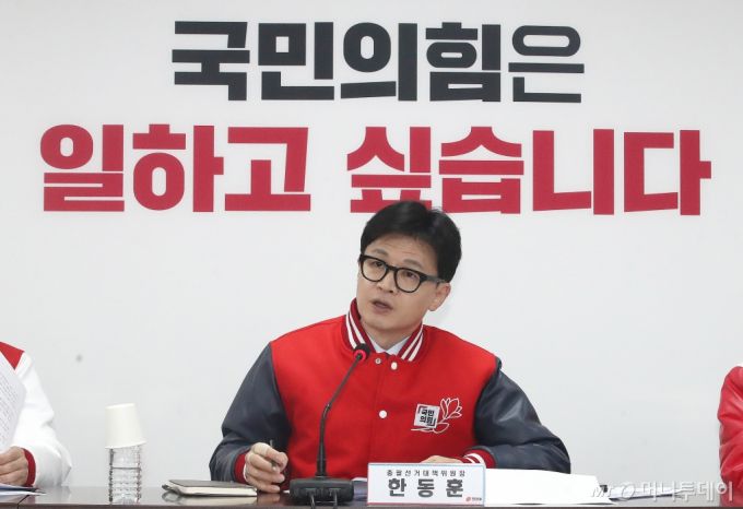 (서울=뉴스1) 임세영 기자 = 한동훈 국민의힘 비상대책위원장이 24일 오전 서울 여의도 중앙당사에서 열린 중앙선거대책위원회의에서 모두발언을 하고 있다. 2024.3.24/뉴스1 Copyright (C) 뉴스1. All rights reserved. 무단 전재 및 재배포, AI학습 이용 금지. /사진=(서울=뉴스1) 임세영 기자