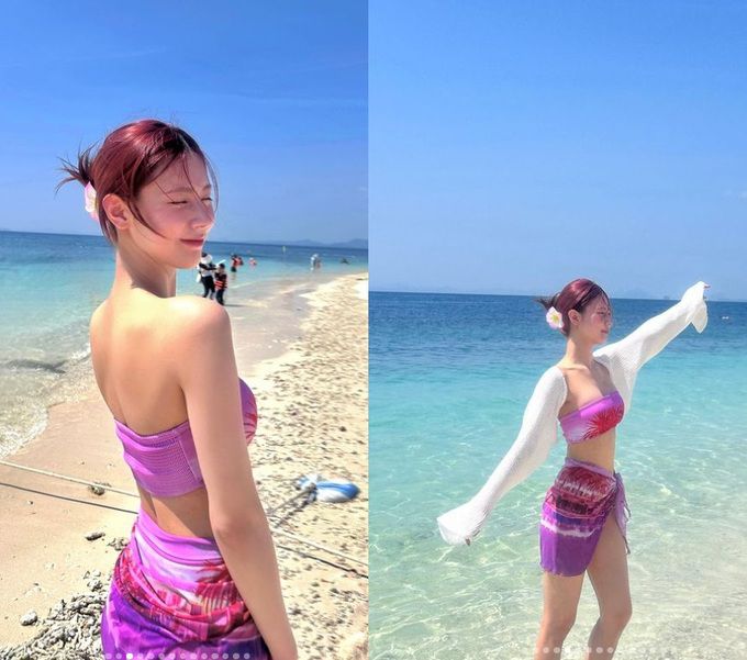 공개된 사진은 태국 푸켓에서 휴양을 즐기는 그의 모습. 특히 미연은 비키니를 입고 해변을 거닐며 늘씬한 몸매를 자랑해 시선을 모은다.