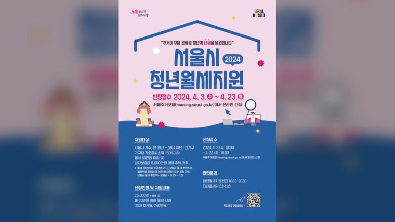 서울시는 청년 2만5천 명에게 최대 월 20만 원 월세를 1년 동안 지원하는 '2024년도 청년 월세 지원' 신청자를 모집합니다.