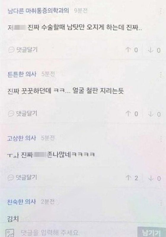 댓글엔 “이름 밝히고 의사 사회에서 묻어야 할 듯” 같은 비방과 욕설이 올라왔다. 초성을 적거나 이름으로 된 삼행시를 짓는 식으로 실명을 특정할 수 있는 댓글도 올라왔다. 가족을 언급하거나 A교수의 나체를 묘사한 그림까지 게재됐다. A교수에게 늦은 밤까지 수시로 전화가 오기도 했다. A교수는 중앙일보와의 통화에서 “메디스태프에서 계속해서 범죄에 가까운 일이 자행되고 있는데 마땅한 조치가 있는지 의심스럽다”고 말했다.