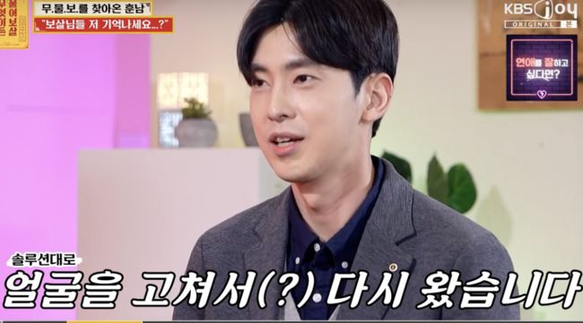 25일 방송된 KBS조이 예능 ‘무엇이든 물어보살’에서 지난해 솔루션 받고 성형수술로 환골탈태한 남성이 ‘물어보살’에 다시 떴다. 그는 소개팅 50번 까인 남자’로 지난해 방송에 출연해 조회수 121만을 기록했던 사연자. 첫 출연 당시와는 전혀 다른 모습으로 재방문해 보살들을 놀라게 했다.