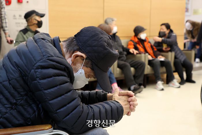 전국 의대 교수 집단 사직서 제출 이틀 차인 26일 서울 시내 한 대학 병원에서 한 외래 환자가 손을 모은 채 진료를 받기 위해 순서를 기다리고 있다. 조태형 기자 |