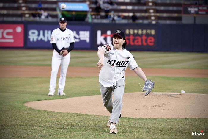 KT는 26일 수원 케이티위즈파크에서 열린 2024 KBO리그 두산과의 시즌 첫 경기 시구자로 이 씨를 초청했다.