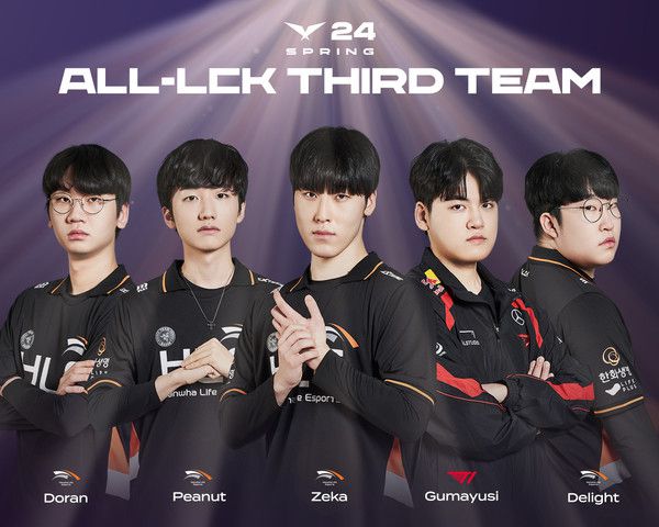 서드 팀에는 한화생명e스포츠 탑 라이너 '도란' 최현준, 같은 팀의 '피넛' 한왕호와 '제카' 김건우, T1 원거리 딜러 '구마유시' 이민형, 한화생명e스포츠의 서포터 '딜라이트' 유환중이 뽑혔다. 올 LCK 팀에 선정된 선수들에게는 각각 200만원이 주어진다.