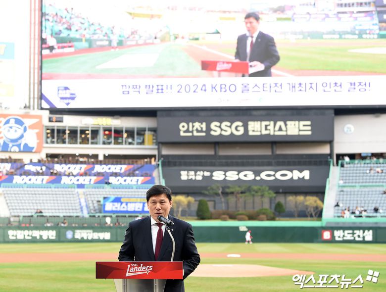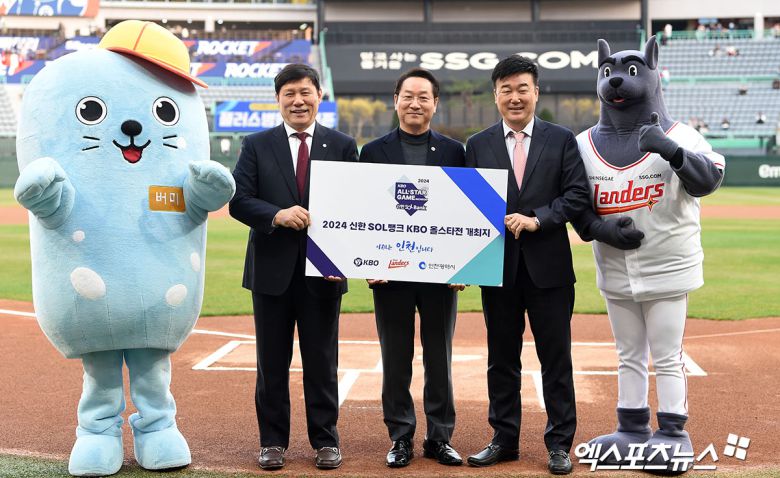 허구연 KBO 총재와 유정복 인천광역시장, 민경삼 SSG 랜더스 대표이사는 이날 SSG랜더스필드에서 열리는 2024 신한 SOL Bank 한화 이글스와 SSG 랜더스의 시즌 1차전을 앞두고 야구팬 앞에서 직접 KBO 올스타전이 인천에서 개최된다고 발표했다.