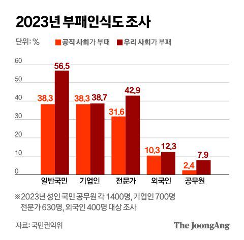 젊은 공무원의 사기를 꺾는 공직 정치화·부패 현상도 경계해야 할 주요 요인 중 하나로 꼽힌다. 정권이 바뀔 때마다 공직 사회가 흔들리는 것을 목격한 젊은 공무원의 근로의욕을 악화할 수 있기 때문이다. 지난해 국민권익위원회가 국민 1400명과 기업인 700명, 전문가 630명 등을 상대로 실시한 부패인식도 조사 결과 "공무원이 부패하다"고 응답한 국민은 38.3%였다. 임도빈 서울대 행정대학원 교수는 “공직자가 정책을 잘 만드는 것보다 정치적으로 줄을 잘 서는 것이 더 중요하다고 생각하거나 정치적 압력에 수동적으로 침묵하는 걸 당연하다고 받아들이는 부작용이 생길 수 있다”고 말했다.