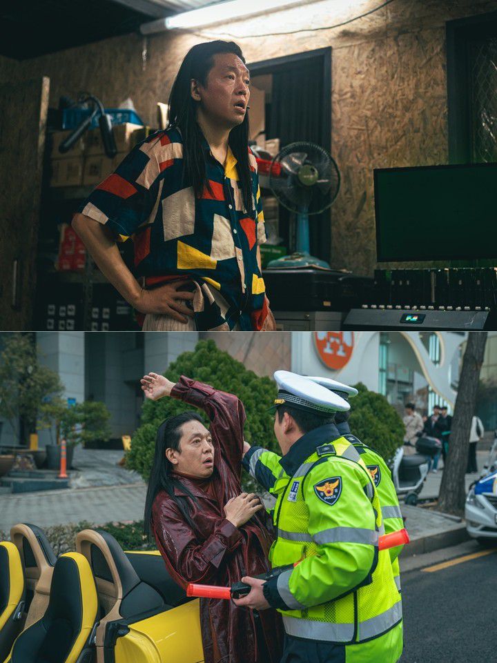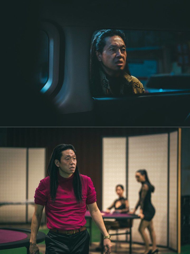 영화 '범죄도시4' 히든카드 활약을 예고한 장이수 역 박지환의 캐릭터 스틸이 공개됐다.