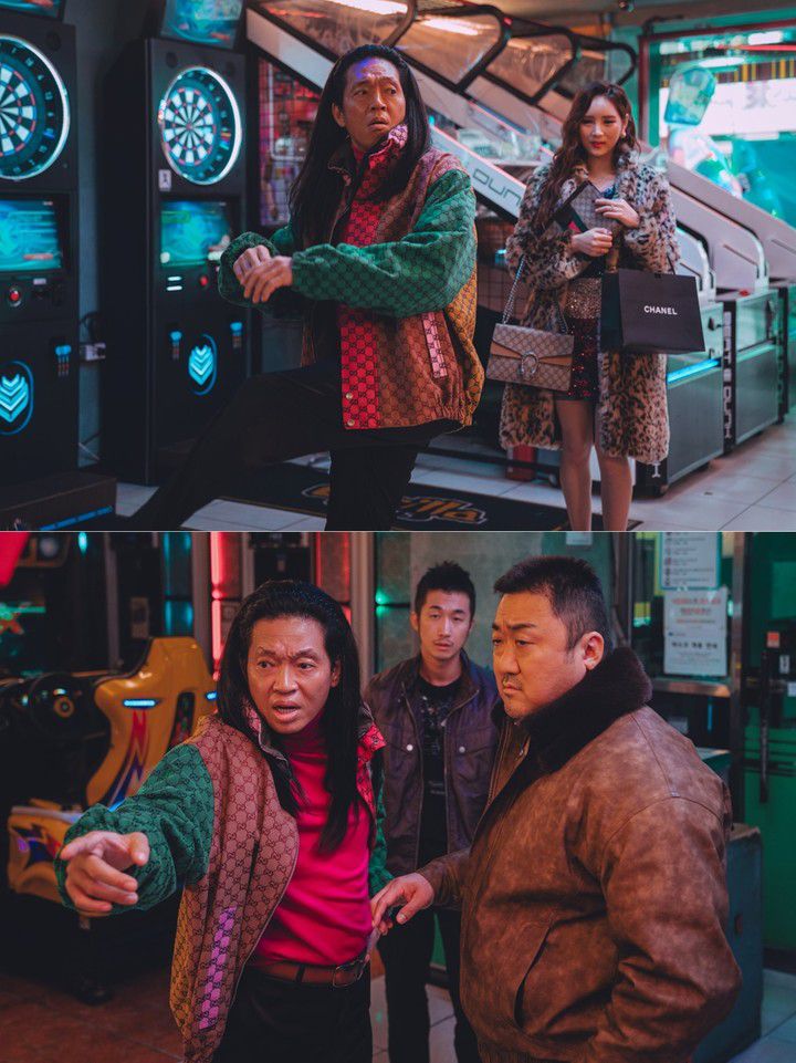 공개된 스틸에서는 화려한 색감의 명품 의상과 장발 스타일링, 시그니처와도 같은 억울한 표정 등이 눈길을 끈다. 또한 마석도와의 한층 더 업그레이드된 케미스트리도 뽐낼 것으로 기대를 모은다.