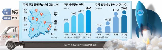 쿠팡은 2024~2026년 신규 풀필먼트센터(통합 물류센터) 확장과 첨단 자동화 기술 도입, 배송 네트워크 고도화 등에 3조 원을 투자한다는 내용을 담은 투자안을 27일 발표했다. 투자안에 따르면 쿠팡은 경북 김천과 충북 제천, 부산, 경기 이천, 충남 천안, 대전, 광주, 울산 등 8곳 이상 지역에 신규 풀필먼트센터 운영을 위한 신규 착공과 설비투자를 추진한다. 광주와 대전은 올해 풀필먼트센터 운영을 시작하고 부산과 이천은 올해 2분기, 김천은 3분기, 제천은 4분기에 각각 착공할 계획이다.