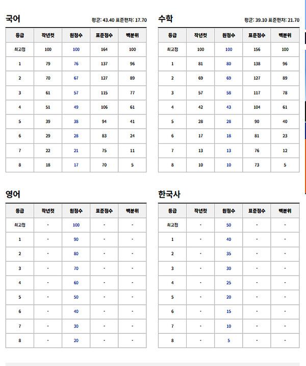 ebsi에 따르면 고2학년 예상등급컷은 국어 1등급은 76점, 2등급은 67점, 3등급은 57점이다.수학1등급은 80점, 2등급은 69점, 3등급은 58점이다.