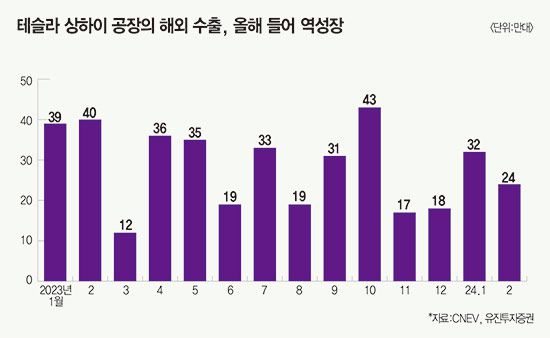 한병화 유진투자증권 애널리스트는 “테슬라가 전기차 시장을 선도할 수 있었던 이유는 규모의 경제와 이를 실현할 수 있는 제조 역량에 있었다”며 “중국 공장은 테슬라의 성장 엔진이었다”고 말했다. 그도 그럴 것이, 중국 공장은 중국 내수뿐 아니라 글로벌 전역으로 수출하는 기지 역할을 맡아왔다. 그러나 테슬라의 상하이 공장이 성장 한계에 봉착할 수 있다는 우려가 커졌다는 게 한 애널리스트 분석이다. 중국 현지 전기차 업체 경쟁이 치열해졌고, 유럽이나 미국의 중국산 전기차에 대한 무역장벽으로 수출 제한이 심해져서다.