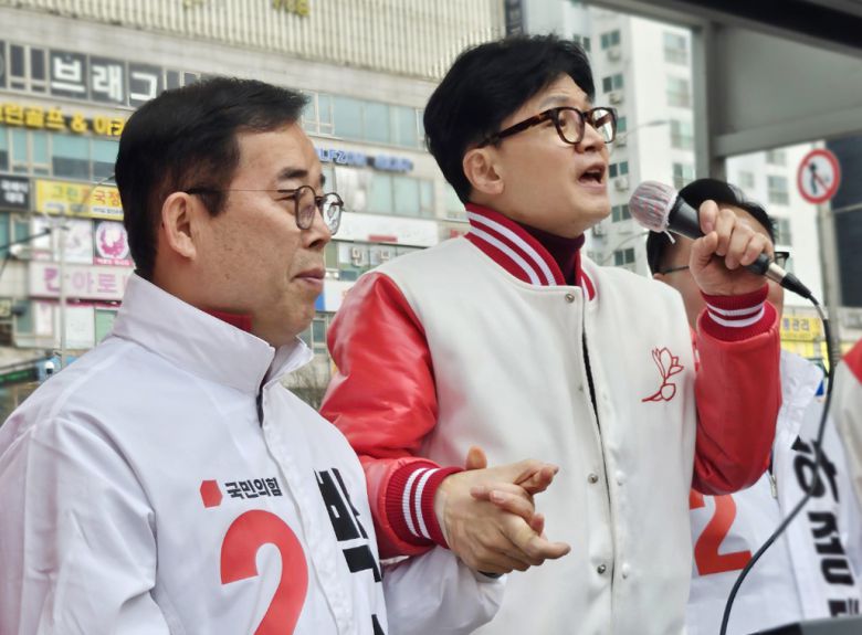 한 위원장은 이날 경기·인천 지원 유세에서 편법 대출 논란이 제기된 양문석 경기 안산갑 민주당 후보, 박정희 전 대통령과 군 위안부 비하 발언 논란이 불거진 김준혁 경기 수원정 민주당 후보에 대한 공세를 퍼부었다.
