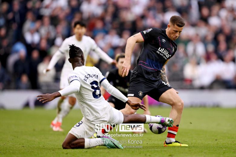 이후 토트넘은 빠르게 동점 골을 노렸다. 전반 19분 손흥민은 1대1 찬스를 맞이했고 카민스키를 제친 뒤, 침착하게 슈팅했다. 그런데 이 볼이 양 쪽 골대를 맞고 나왔다. 이어진 베르너의 슈팅은 상대 수비에 가로막혔고, 사르가 때린 회심의 슈팅 역시 루턴 타운 수비수에게 막혔다. 토트넘 입장에선 너무나 아쉬운 순간이었다. 두 팀의 전반전은 루턴 타운이 1-0 리드를 잡은 채 끝났다.