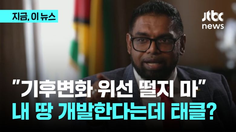 초반에는 차분하게 이야기를 나눴지만, 진행자가 가이아나의 석유 개발로 탄소 배출이 심해져 기후 변화 문제에 위협이 된다고 지적하자 알리 대통령이 발끈합니다.