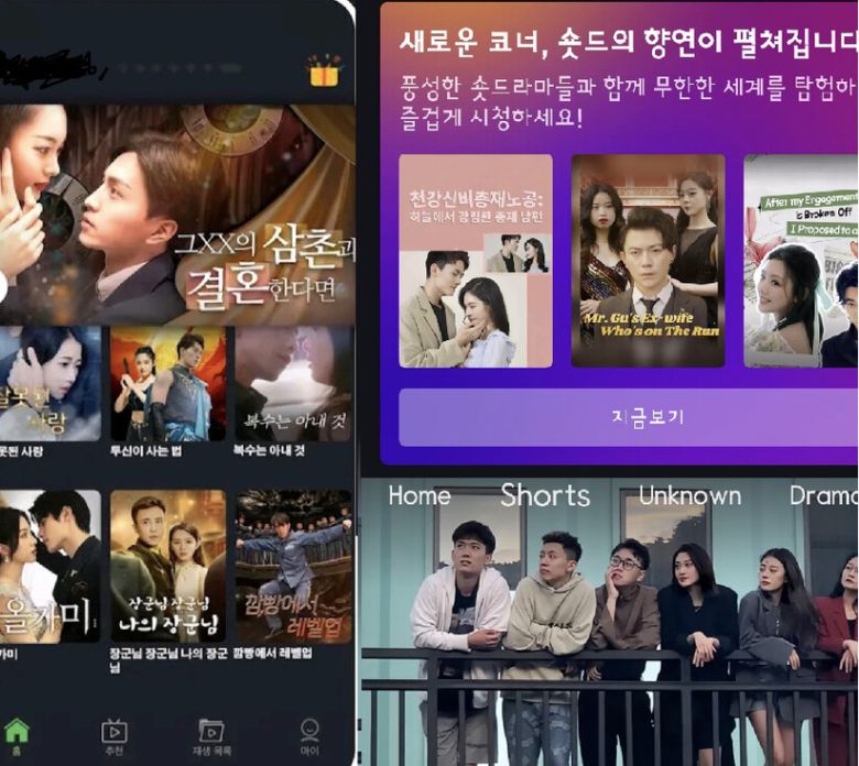 중국을 중심으로 외국에서 인기를 얻는 쇼트폼드라마가 한국에서도 제작되고 있다. 지난해 외국기반 쇼트폼드라마 플랫폼이 국내에 서비스를 시작했고, 국내 첫 쇼트폼드라마 플랫폼도 지난달 출시됐다. 각 플랫폼 화면 갈무리