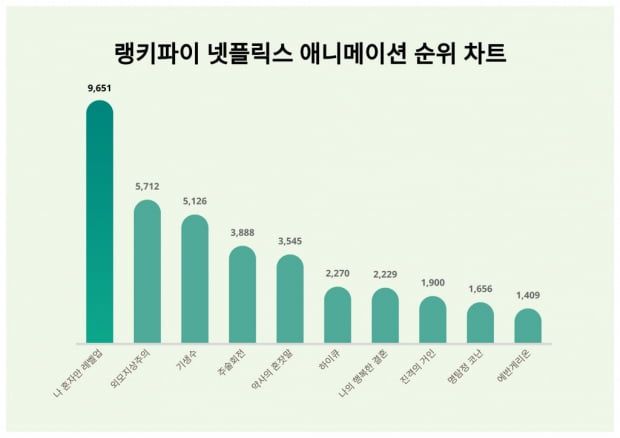 나 혼자만 레벨업, 넷플릭스 애니메이션 트렌드지수 순위 1위…외모지상주의·기생수 뒤이어