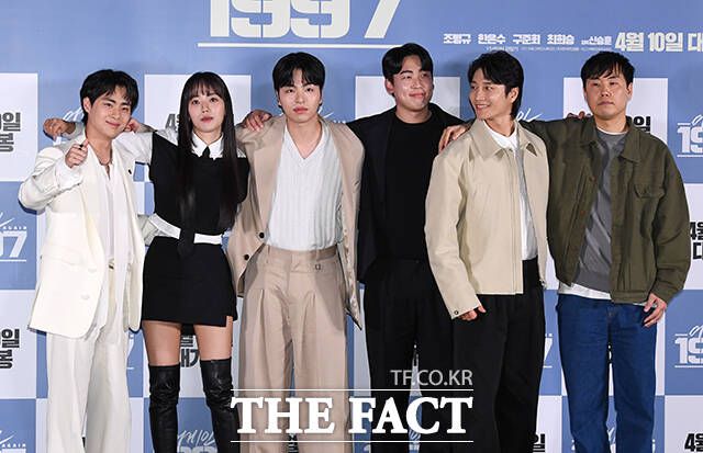 [더팩트ㅣ서예원 기자] 배우 조병규와 한은수, 구준회, 최희승, 김다현, 신승훈 감독(왼쪽부터)이 1일 오후 서울 용산구 CGV 용산 아이파크몰에서 열린 영화 '어게인 1997' 시사회 및 기자간담회에 참석해 포즈를 취하고 있다.