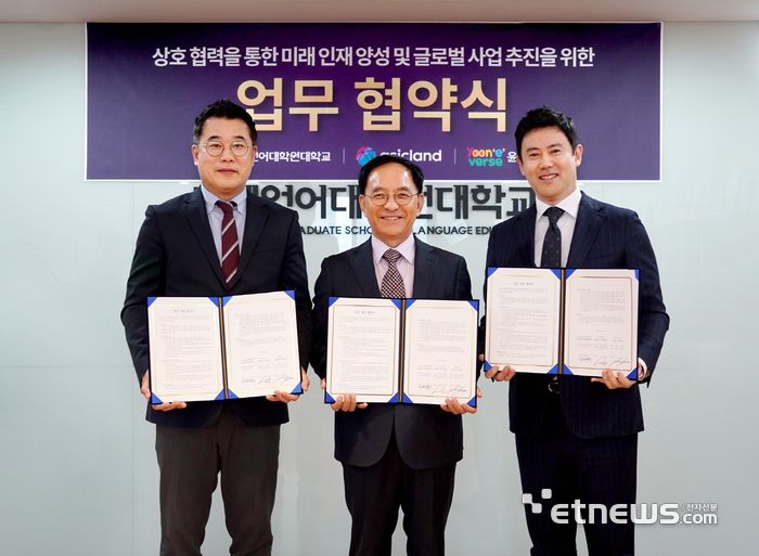 교육 플랫폼 기업 윤이버스가 시스템 반도체 디자인 솔루션 전문기업 에이직랜드, 국제언어대학원대학교와 글로벌 미래 인재 양성을 위해 업무 협약을 체결했다고 2일 밝혔다.