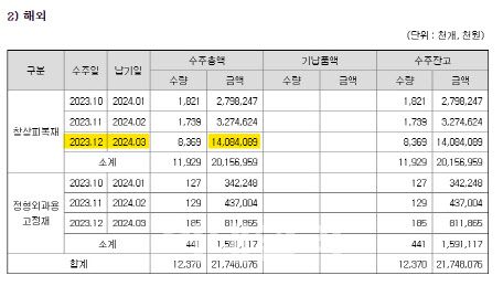 티앤엘 1분기 해외 수주 현황 (자료=금융감독원) |