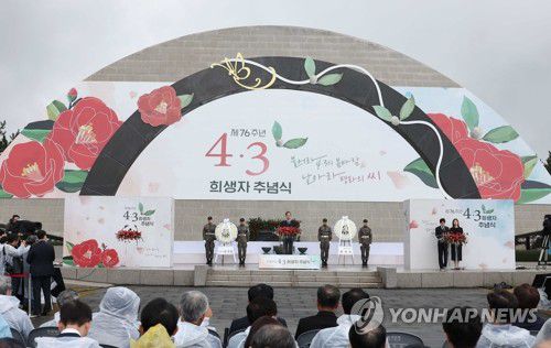 (제주=연합뉴스) 고성식 전지혜 기자 = 제76주년 4·3 희생자 추념식이 3일 오전 10시 제주4·3평화공원 위령제단 일원에서 유족 등 1만여명이 참석한 가운데 봉행됐다.