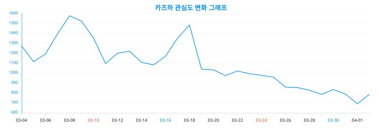 이 차트는 카즈하의 시간에 따른 인기 변동성을 직관적으로 이해할 수 있는 지표이다.