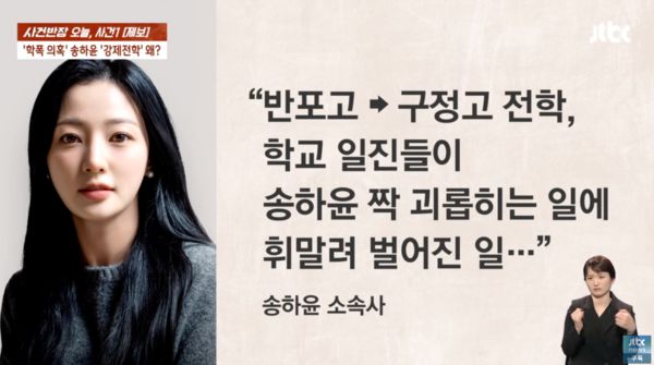 지난 2일 오후 JTBC '사건반장'은 송하윤의 학교 폭력 의혹을 후속 보도했다.