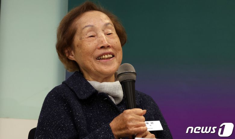 정영선 한국 1세대 조경가가 4일 서울 종로구 국립현대미술관에서 열린 '정영선: 이 땅에 숨 쉬는 모든 것을 위하여' 언론공개회에서 얘기를 하고 있다. 2024.4.4/뉴스1 ⓒ News1 김명섭 기자 |
