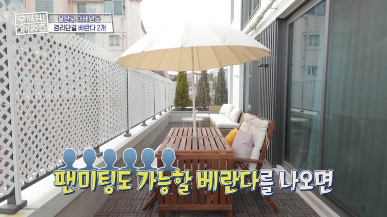이태원의 한 매물을 둘러보던 중 MC들은 널찍한 베란다에 감탄했다. 팬미팅도 가능하겠다는 이야기가 나왔을 정도.