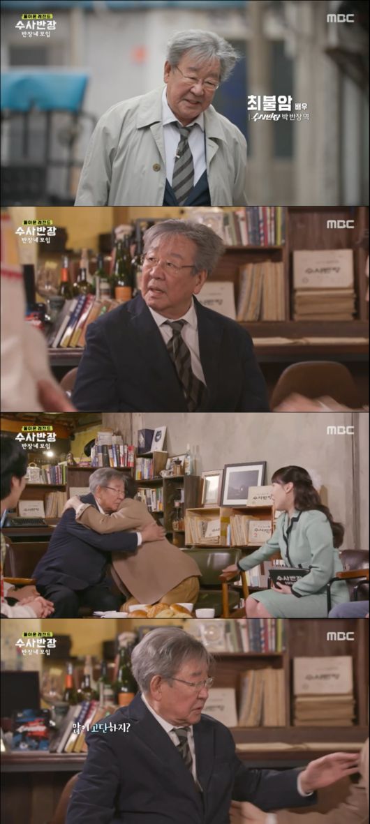 수사반장 네 배우가 한 자리에 모였다. 이후 MC 이은지가 등장했고 “이렇게 만나게 돼서 반갑습니다”라며 큰소리로 인사를 했다. 이어 반장네 모임의 마지막 참가자인 최불암이 자리했다. 최불암은 이제훈을 포옹하며 “많이 고단하지?”라며 격려했다.