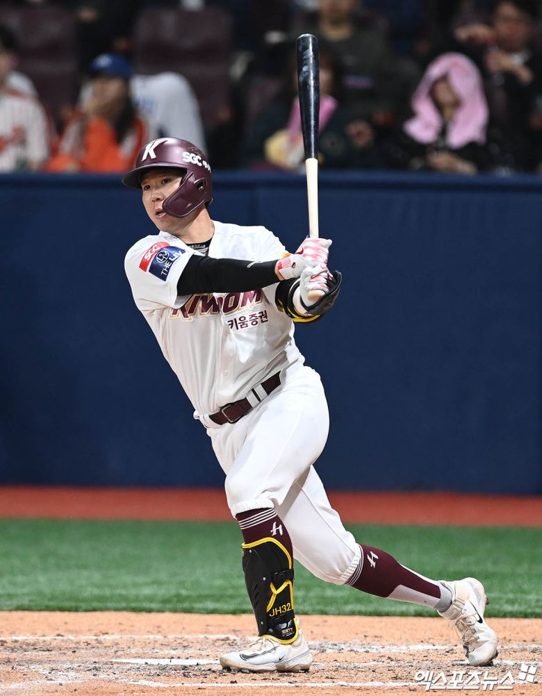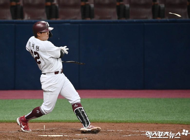 김재현은 7일 고척스카이돔에서 열린 '2024 신한 SOL Bank KBO 리그' 한화 이글스와 주말 3연전 마지막 경기에 8번타자 포수로 선발 출전했다. 최종 성적은 4타수 1안타로 팀의 11회말 4-3 짜릿한 끝내기 승리에 힘을 보탰다.