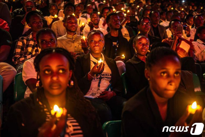 7일(현지시간) 르완다 수도 키갈리에서 진행된 '르완다 집단 학살 30주년 기념식'에서 르완다 젊은이들이 촛불을 들고 있다. 2024.04.08 ⓒ AFP=뉴스1 ⓒ News1 조소영 기자