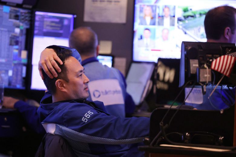 뉴욕증권거래소(NYSE)에서 2일 트레이더가 주가를 살피고 있다. 뉴욕(미국)/AFP연합뉴스