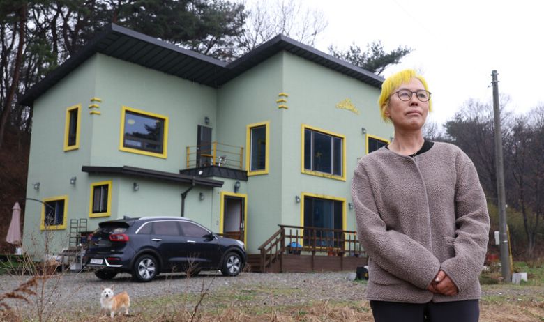 권순범 학생 엄마 최지영씨가 지난달 28일 충남 홍성에 있는 자신의 집 앞에서 생각에 잠겨 있다. 최씨는 2020년 이 집을 지어 1층은 생활 공간, 2층은 아들을 위한 세월호 기억관으로 꾸몄다. 김정효 기자 |