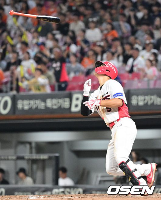 김도영은 "초구는 직구가 올 것 같았다. 타이밍을 빨리 잡고 직구 하나만 보고 있었는데 운이 좋아 넘어갔다. 잘 맞은 느낌은 아니었다. 앞에서 걸렸다. (5일) 삼성전 첫 홈런은 다시는 못칠 것 같았지만 오늘 홈런을 치는 감각을 계속 생각하면 좋은 결과가 나올 것 같다. 이런 의미에서 오늘 진짜 좋은 타구였다"고 만족감을 보였다.