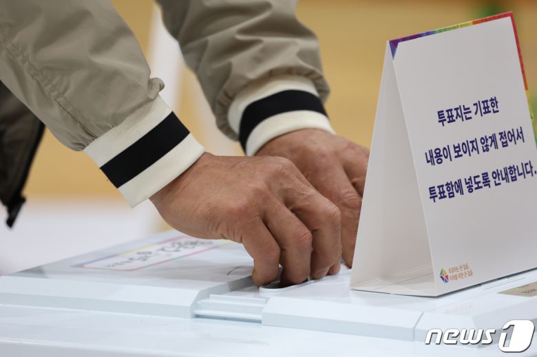 제22대 국회의원 선거 투표날인 10일 오전 광주 광산구 월곡초등학교에 마련된 투표소에서 유권자가 투표를 하고 있다. 2024.4.10/뉴스1 ⓒ News1 김태성 기자
