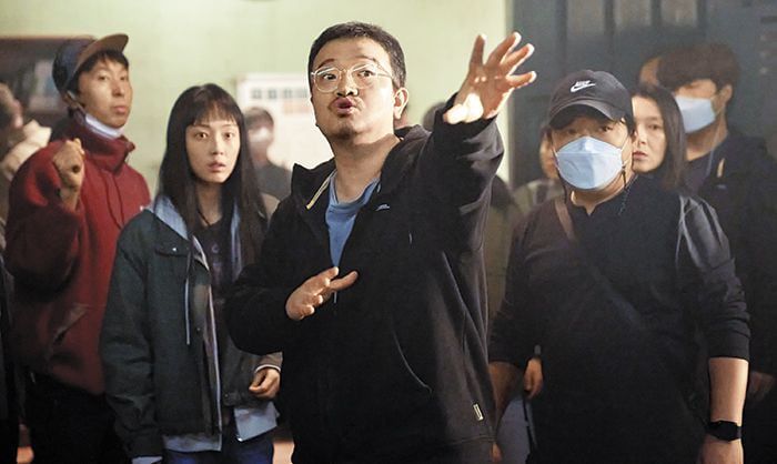 ‘기생수: 더 그레이’ 촬영 현장의 연상호(가운데) 감독. /넷플릭스 |