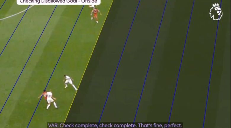 당시 미드필더 커티스 존스가 퇴장을 당해 수적 열세에 처해 있던 리버풀은 전반 33분 콜롬비아 윙어 루이스 디아스가 모하메드 살라의 좋은 패스를 받아 토트넘 골망을 흔들면서 귀중한 선제 득점을 올리는 듯했지만 부심이 깃발을 들면서 오프사이드를 선언했다. 이후 VAR까지 가동됐지만 원심이 그대로 유지돼 디아스의 득점은 오프사이드로 취소됐다.