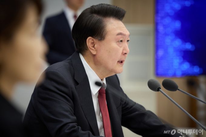 (서울=뉴스1) 오대일 기자 = 윤석열 대통령이 9일 용산 대통령실 청사에서 열린 반도체 현안 점검회의에서 모두발언을 하고 있다. (대통령실 제공) 2024.4.9/뉴스1  Copyright (C) 뉴스1. All rights reserved. 무단 전재 및 재배포,  AI학습 이용 금지. /사진=(서울=뉴스1) 오대일 기자