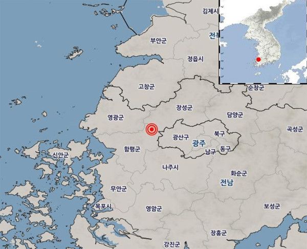 발생위치는 위도 35.21 N 경도 126.62 E이며, 깊이는 16km이다.
