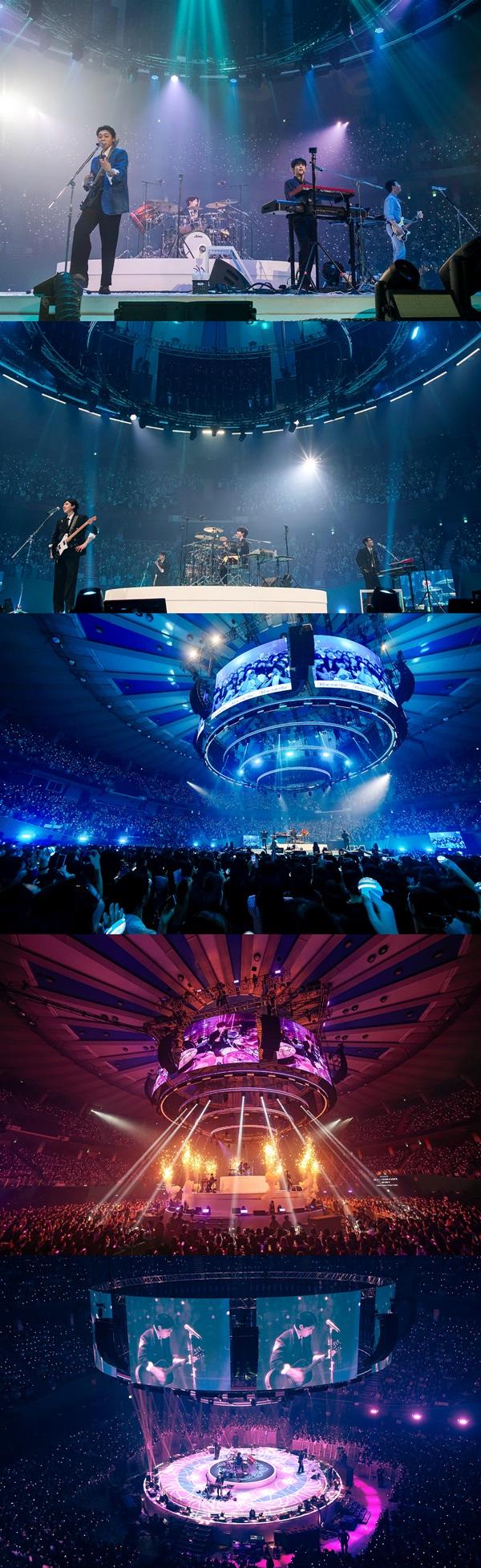 이번 공연은 밴드 악기 사운드를 만끽할 수 있는 풍성한 음향 연출로 입체적 공간감을 더하고, 공연장 곳곳 어떤 각도에서도 음악으로 소통할 수 있도록 360도 공연으로 기획됐다. 공연장 중앙에 설치된 무대가 원형으로 회전하며 모든 곳에 앉은 관객과 마주할 수 있게 연출된 셈이다. 특히 무대는 그룹 로고로 디자인돼 팬들의 만족감을 높였다.