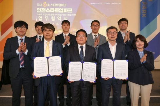 15일 현대모비스는 인천경제자유구역청, 인천테크노파크와 함께 '스마트 모빌리티 혁신 스타트업 육성 협력'을 위한 업무 협약(MOU)을 체결했다고 밝혔다. 이 협약식에는 윤원석 인천경제자유구역청장과 이주호 인천테크노파크 원장, 장재호 현대모비스 전장연구담당(전무) 등 관계자들이 참석했다.