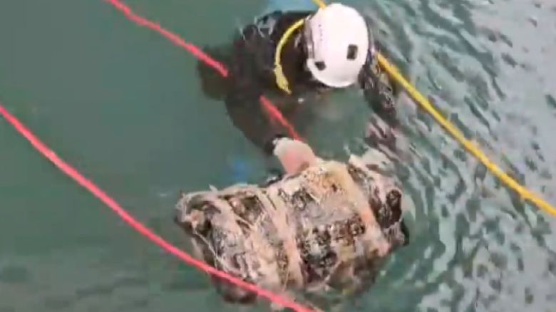 잠수부가 따개비를 제거하러 갔다가 통로 안에서 검은 가방 하나를 발견했습니다.