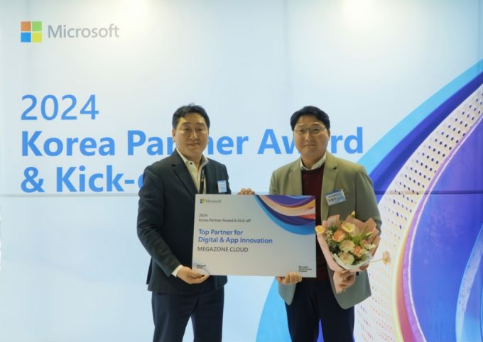 클라우드 선도기업 메가존클라우드는 한국MS(마이크로소프트'의 '2024 코리아 솔루션 파트너 어워드'에서 '디지털 & 앱 이노베이션 부문 탑파트너' 상을 수상했다.