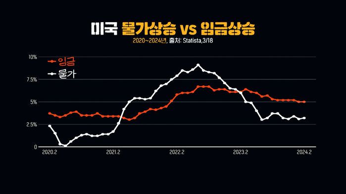 최근에 임금 상승률을 보면 물가 상승률보다 높아지기 시작했어요. 그리고 주식 시장도 굉장히 호황이고, 그다음에 미국이 AI라든지 바이오테크라든지 이런 기술 경쟁에서도 다른 나라에 비해서 굉장히 압도적으로 앞서 있는 상황이기 때문에 경제 지표만 놓고 보면 바이든에게 사실 불리한 상황이 전혀 아니거든요.