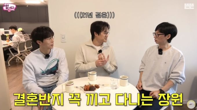 유부남인 세 사람은 가정, 육아, 일상 등을 주제로 대화했다. 유재석은 이장원 왼손에 있는 반지를 들어 보이며 "이거 결혼반지 아니냐"고 물었다. 이장원이 그렇다고 답하자 유재석은 신재평에게도 결혼반지에 대해 질문했다.
