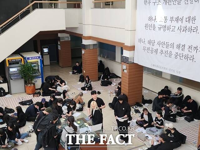 학생 70여명은 검은색 옷을 입고 행정관 로비에 나란히 앉아 5대 요구사항을 외쳤다. 5대 요구사항은 △소통 없이 진행 중인 학사구조 개편 철회 △전체 학생 대상 단과대학별 설명회 개회 △학생들 의견 수렴한 학사구조 개편안 전달 △소통 부재에 대한 원인 규명 및 사과 △해결 전까지 무전공제 추진 중단 등이다.