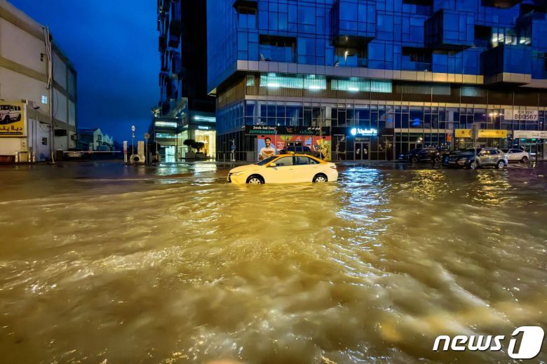 17일 (현지시간) 75년 만에 기록적인 폭우가 쏟아진 UAE 두바이의 거리가 물에 잠긴 모습이 보인다. 2024. 4. 18 ⓒ AFP=뉴스1 ⓒ News1 우동명 기자